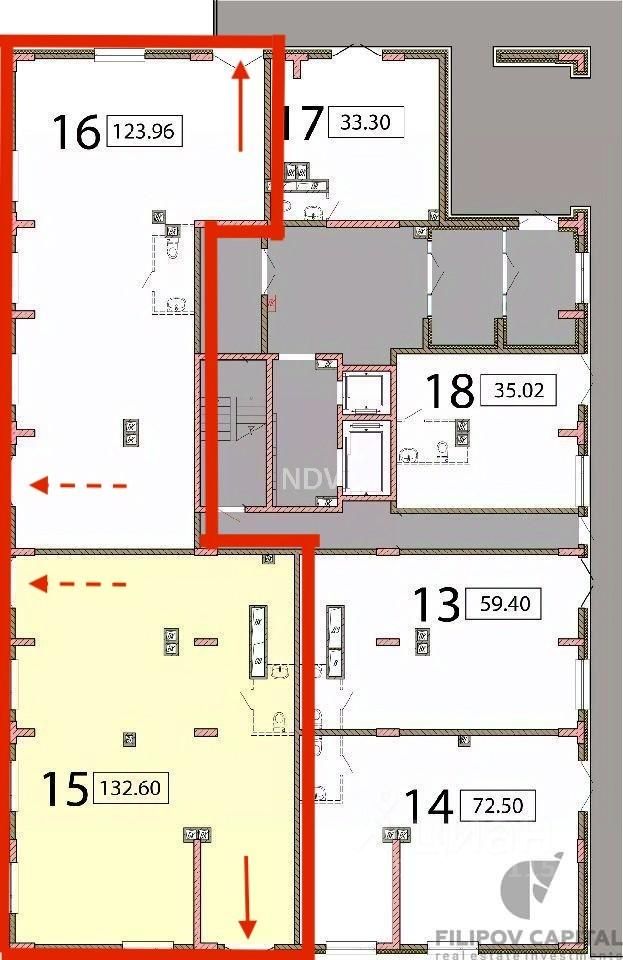 Предлагаем в аренду помещения в новом ЖК. Площади 255, 132, 123, 80, 40, 35 кв.м. - рассматриваем дробление и объединение площадей.