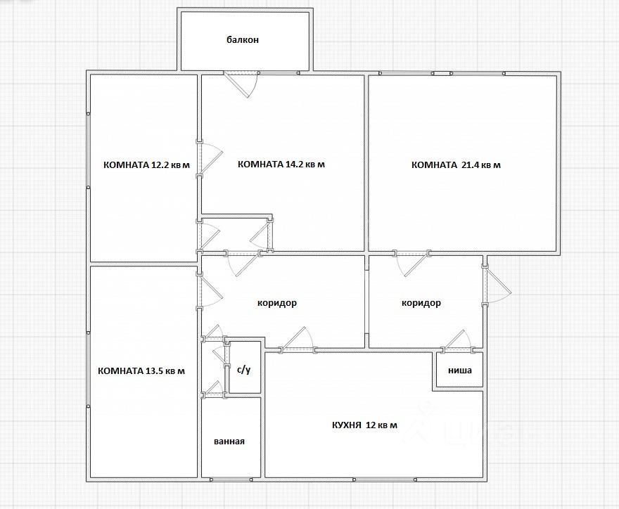 Простор в 97.2 квадратных метра. С изолированными комнатами (21.4 кв, 14.2 кв, 13.5 кв, 12.2 кв).