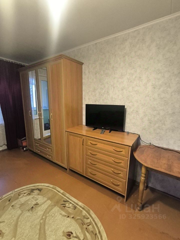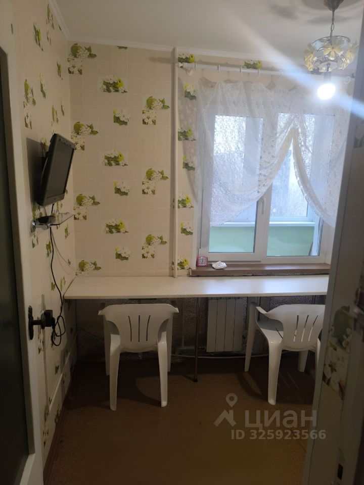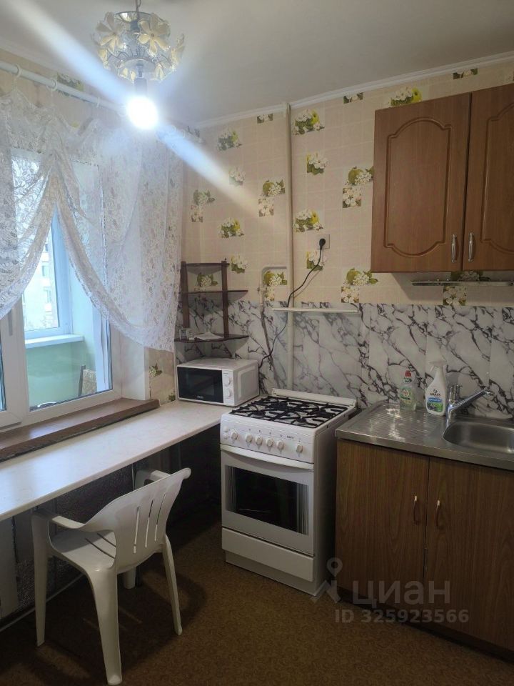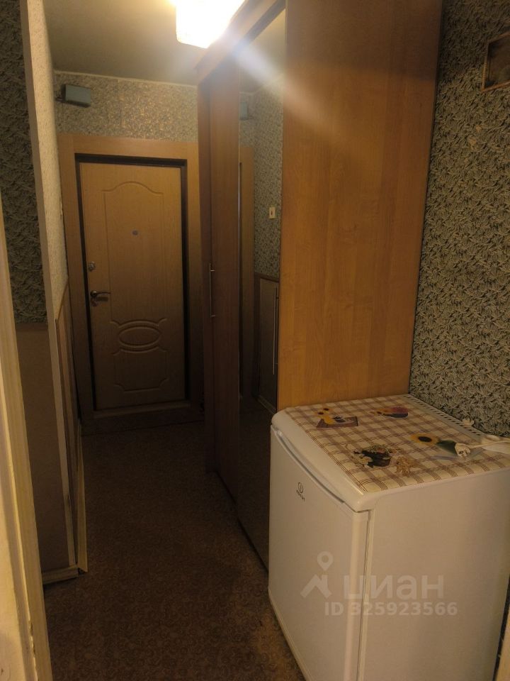 В квартире выполнен косметический ремонт. Просторная комната оборудована шкафами и диваном. На кухне установлена необходимая бытовая техника, включая холодильник и микроволновую печь. Также имеется обеденный стол и стулья.